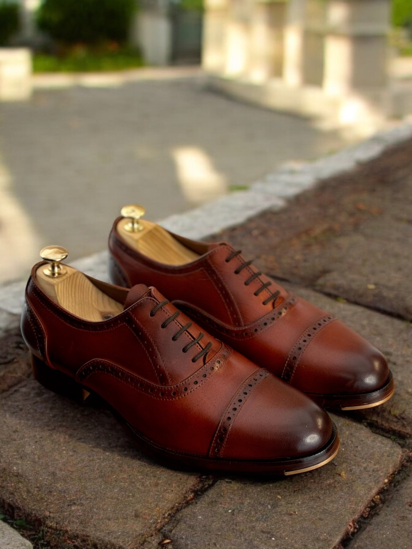 Expertly handcrafted from premium leather, each pair is built with meticulous stitching and hand-burnished patina across the toe and heel. Brogue perforations are sharply detailed and aligned with care to honor tradition without overwhelming the design’s clean lines.