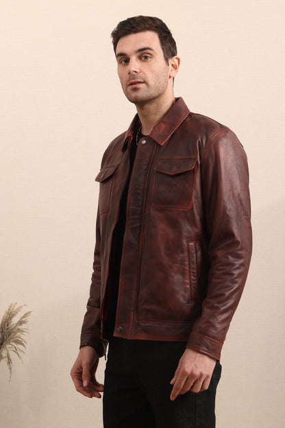 Function Draped in Refinement — Russet Trail – Leather Utility Jacket brings utilitarian heritage into the realm of elegant craftsmanship. Wrapped in warm russet-toned leather and designed with purpose-driven pockets and clean structure, it is ideal for the man whose life moves between city walks and country escapes. Versatile yet composed, this piece honors movement, without ever sacrificing poise.